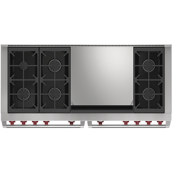 Газовая варочная поверхность состоит из шести горелок, мощностью от 2,7кВ (для топления) до 5,3кВ (для быстрого закипания и интенсивной обжарки) . Их двухуровневая запатентованная конструкция позволяет максимально точно контролировать температуру нагрева. Система искрового зажигания автоматически повторно зажигает горелку при её заливе. Увеличенная площадь теппана обеспечивает равномерное распределение тепла, позволяя быстро приготовить сразу несколько блюд для большой семьи или гостей.
