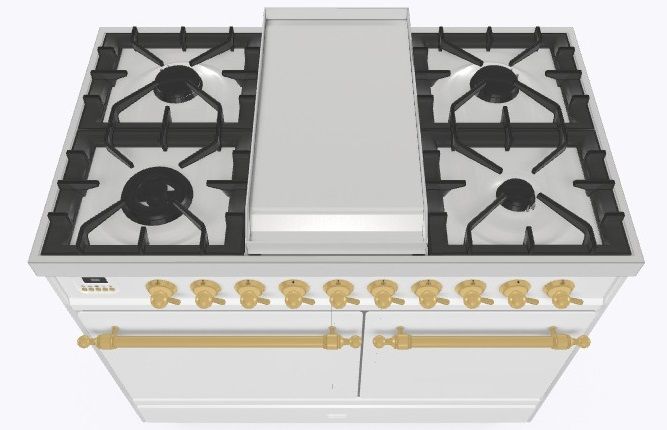 - Тип конфорок: 4 газовые конфорки, WOK конфорка, жарочная поверхность Fry Top